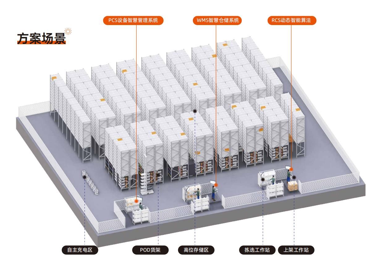 關(guān)于TopPick上存下揀解決方案,螞蟻機(jī)器人TopPick 貨到人上存下揀解決方案,由箱式倉儲機(jī)器人與潛伏舉升機(jī)器人雙機(jī)協(xié)作,搭載RCS智慧管理平臺、WMS倉庫管理平臺和和PCS多功能工作站,實現(xiàn)不同體積貨物高密集存儲和一站式揀選。該方案在充分利用高位倉庫存儲空間的同時,提升出入庫效率,打造“貨到人”一站式智能揀選新模式。