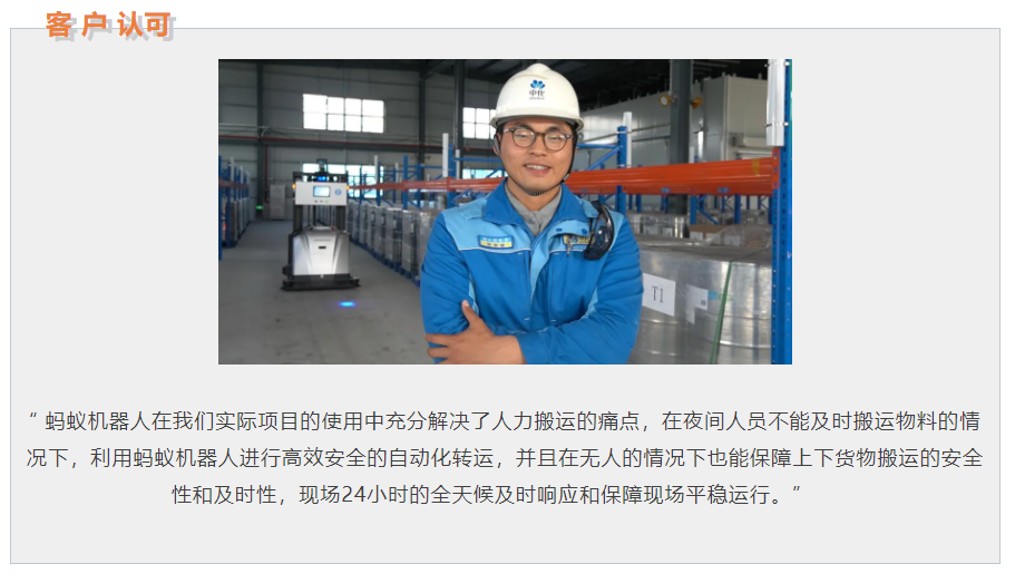 憑借高效靈活的化工物流自動化解決方案和全生命周期服務保障,螞蟻機器人贏得了客戶高度的認可和信任,未來螞蟻機器人將持續(xù)聚焦客戶難點,助力企業(yè)降本增效,推動更多行業(yè)的智能化轉型升級。