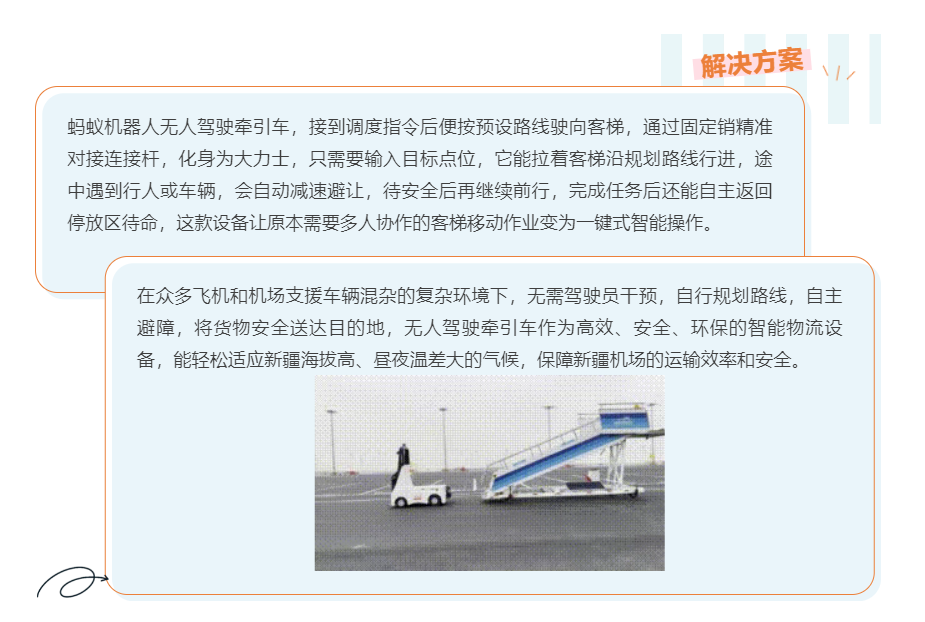 在此背景下,新疆機場集團天翼航空地服分公司攜手螞蟻機器人,引進了機場無人搬運解決方案,為一流機場建設蓄勢賦能,助力航空物流向智能化和數字化轉型邁出重要一步。