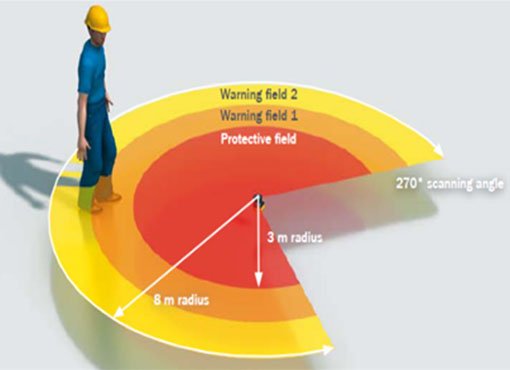 安全避障區域可以跟隨AGV行駛方向及動作進行切換。能在前進、轉彎、橫移等方向上根據車速動態調整避障范圍及區域。